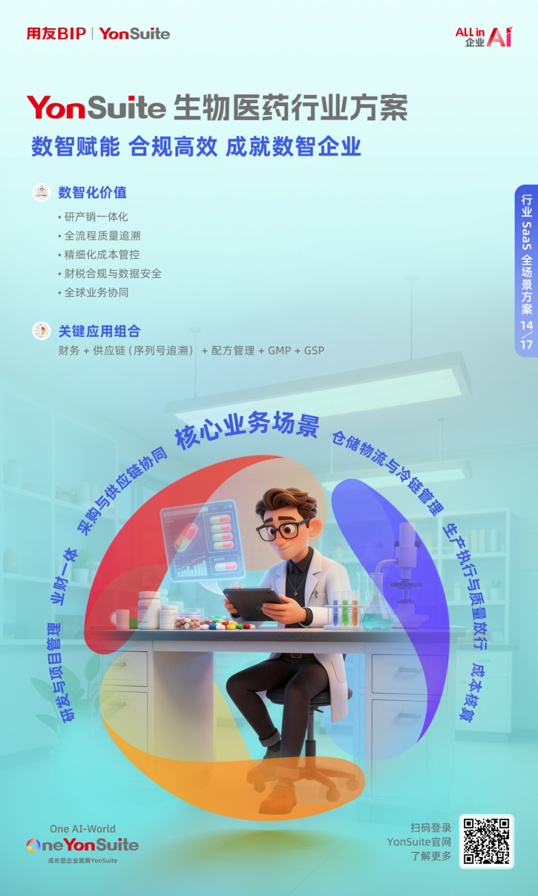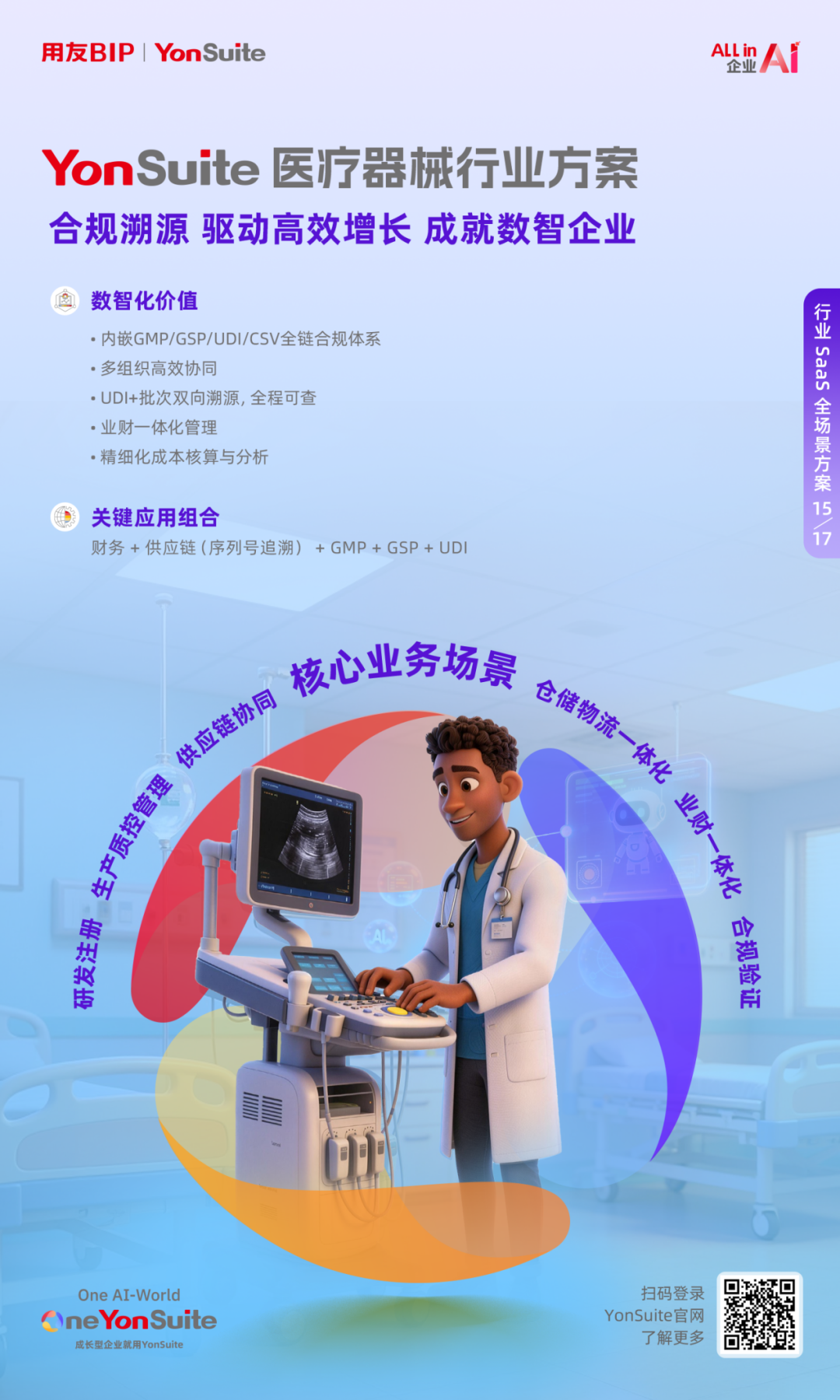 數(shù)智化轉(zhuǎn)型,正成為越來(lái)越多醫(yī)藥企業(yè)突破困局的關(guān)鍵路徑。YonSuite深入醫(yī)藥行業(yè),不是提供通用方案,而是針對(duì)生物醫(yī)藥和醫(yī)療器械兩大細(xì)分賽道,打磨出兩套可落地的解決方案——在合規(guī)底線處筑牢防線,在效率瓶頸處打通鏈路,讓企業(yè)在高壓監(jiān)管下依然能跑出節(jié)奏。
